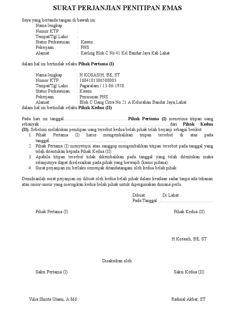 | Lihat Surat Perjanjian Penitipan Uang Pdf |